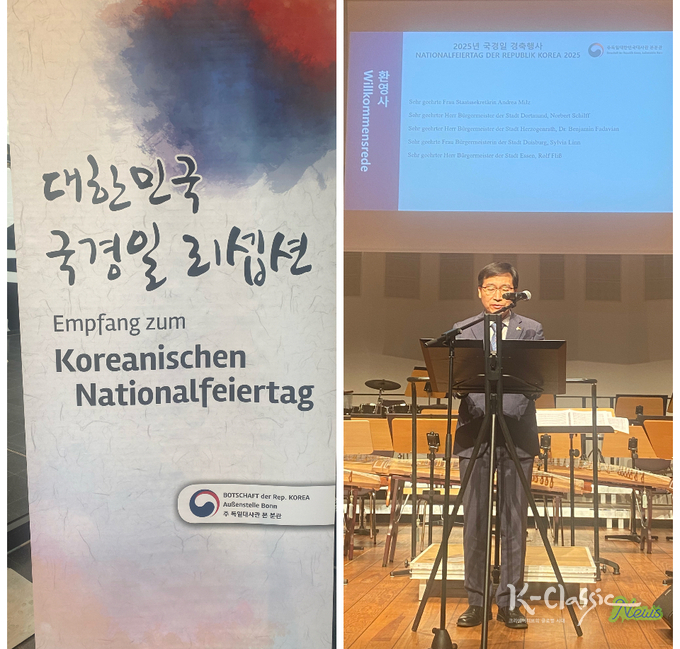 2025년 가을, 독일의 두 도시가 같은 선율로 이어졌다. 9월 30일 프랑크푸르트의 Alte Oper Frankfurt, 10월 2일도르트문트의 Orchesterzentrum NRW의 무대에서 대전시립연정국악단이 연주했고, 지휘는 예술감독 임상규가 맡았다. 그들의 음악은 전통의 재현이 아니라, 현재의 한국음악이 세계와 호흡하는 장면이었다. 이번 순회 공연은 단순한 문화행사라기보다 대한민국 국경일(개천절) 기념 외교 행사의 중심이 되었으며,국가와 예술이 한 공간에서 서로의 언어를 교환하는 자리였습니다. 프랑크푸르트에서는 주독 대한민국 대사 임상범, 프랑크푸르트 총영사 김은정이 함께했고, 도르트문트에서는 본 분관의 민재훈 총영사가 자리를 함께했다.