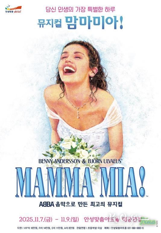 K-Classic News 기자 | 안성맞춤아트홀은 오는 11월 7일부터 9일까지 대공연장에서 세계적인 히트 뮤지컬 '맘마미아!'를 무대에 올린다. 세대를 초월한 명곡과 유쾌한 스토리로 사랑받아온 이번 작품은 남녀노소 누구나 즐길 수 있는 최고의 힐링 뮤지컬이다.