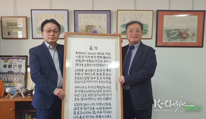 한글 캘리그라피로 다시 기록된 교토국제고의 교가는 이제 단순한 노래가 아니라, 시대를 잇는 평화의 메시지이자 예술로 피어난 우정의 상징으로 오래도록 기억될 것입니다.