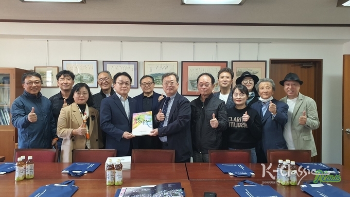 이날 기증식에는 학교 설립자인 왕청일 회장(왕미술관 설립자)을 비롯해 손두형 전시추진단장, 김경민 사무국장, 한경수, 손삼영, 임옥례, 이재진, 이광석, 송진규 등 협회 작가들이 참석하여 자리를 빛냈습니다.