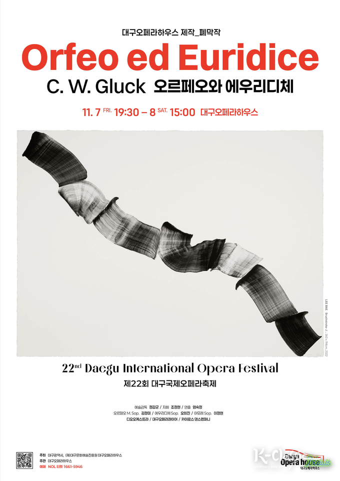 한편 <오르페오와 에우리디체> 공연 입장료는 2만원에서 10만원까지로, 초등학생 이상이면 누구나 관람할 수 있다. 자세한 일정 및 예매는 대구오페라하우스 누리집(https://www.daeguoperahouse.org)과 NOL티켓(1661-5946)을 통해 가능하다.