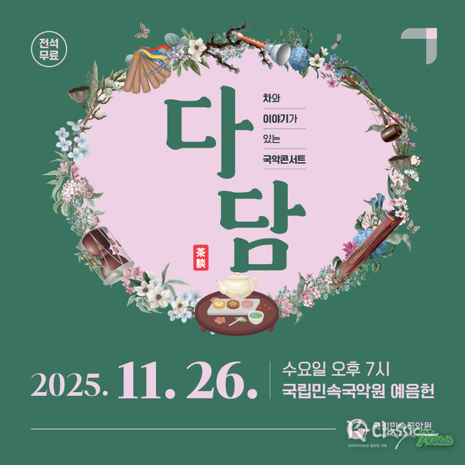 <다담(茶談)>은 명사와 차 한 잔을 나누며 국악의 정취와 인문학적 통찰을 전하는 국립민속국악원의 대표 기획공연이다. 2025년 마지막 무대에서는 건축가 전해갑의 시선과 거문고의 고요한 선율이 어우러져, 한 해를 따뜻하게 마무리하는 문화적 휴식의 시간이 될 것으로 기대된다.