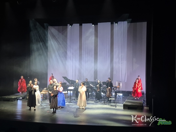 이정화 한국춤 프로젝트가 무대 중앙의 연주자들 앞에서 춤을 추며 가야금은 하프로, 타악은 국악, 양악으로 나뉘어졌고 조윤영이 가창을 하였으나 어느 하나도 뚜렷하거나 성공적인 청각적 개성은 더하지 못하고 어정쩡한, 요즘 어느 공연에서도 볼 수 있는 영상과 조명이 혼합된 무대였다.