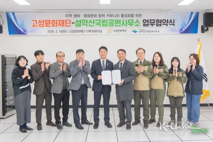 K-Classic News 기자 | 평화 경제 거점 도시 강원 고성군 산하 고성문화재단과 설악산국립공원사무소(소장 노윤경)가 고성군의 생태·평화적 가치를 확산하고 지역사회 협력 커뮤니티를 활성화하기 위해 힘을 모으기로 했다.