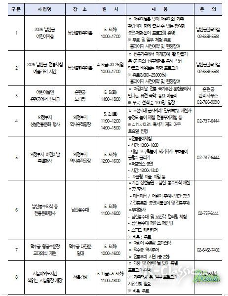K-Classic News 기자 | 고유가와 물가 상승으로 장거리 여행 부담이 커진 가운데, 서울시가 노동절부터 어린이날까지(5.1.~5.5.) 가정의 달 연휴를 맞아 도심 곳곳에서 가족이 함께 즐길 수 있는 다채로운 문화행사를 선보인다.