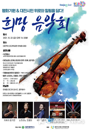 K-Classic News 조연정 기자 | 대전시는 오는 22일 오후 7시 30분 대전엑스포과학공원 한빛탑광장에서 시민 위로와 평화 기원을 담은 ‘희망 음악회’를 개최한다고 18일 밝혔다.