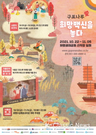K-Classic News 조연정 기자 | 부산 북구는 구민들에게 코로나19로 지친 일상에 위로와 희망을 주고 침체된 지역문화 예술계에 활력을 불어넣고자 10월 22일부터 11월 5일까지 화명생태공원 화명선착장 일원에서 ‘구포나루愛 희망백신을 놓다’ 문화행사를 개최한다고 밝혔다.