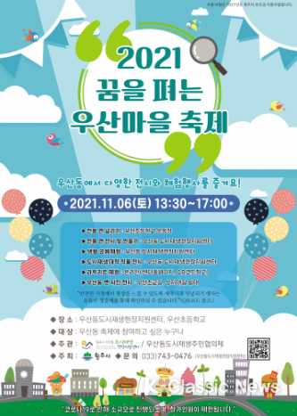 우산동 도시재생현장지원센터는 오는 11월 6일 우산동 일원에서 ‘2021 꿈을 펴는 우산마을 축제’를 개최한다고 밝혔다.