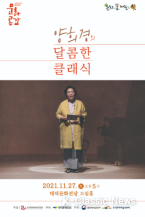 K-Classic News 조연정 기자 | 대구광역시 남구청에서 코로나로 지친 시민들을 위해 마련한 “양희경의 달콤한 클래식” 공연이 다음달 27일 대구에서 처음으로 대덕문화전당 드림홀 무대에 오른다.