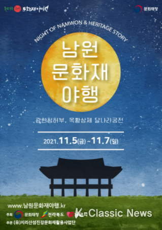 K-Classic News 조연정 기자 | 남원시는 이달 5일부터 사흘간 ‘2021 남원문화재 야행’을 광한루원 일원에서 연다고 밝혔다.