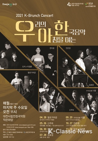 K-Classic News 조연정 기자 | 대전시립연정국악원은 2021 시리즈 기획 K-브런치콘서트‘우·아·한(우리의 아침을 여는 한국음악)’의 여섯 번째 무대를 11월 24일 개최한다고 밝혔다.