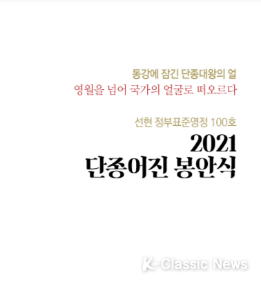 K-Classic News 조연정 기자 | 정부 선현표준영정 제100호인 단종어진의 봉안식이 2021년 11월 28일 13시부터 16시20분까지 영월부관아(관풍헌)와 세계유산 장릉 경내에 위치한 단종역사관에서 거행된다. 어진봉안식은 13시부터 20분간 영월부관아(관풍헌)에서 어진을 신연에 싣는 의식인 고동가제, 13시20분부터 14시까지 관풍헌에서 장릉경내 단종역사관까지 봉안행렬이 이어지고 14시부터 16시20분까지 사귀를 쫓고 경사로운 일을 맞이하는 벽사진경의식, 향정과 신연을 봉안하고 어진궤를 신연에서 받들어 탑상에 어진을 봉안하는 봉안의식과 작헌례, 공식행사, 축하공연, 군민과 관광객의 분향 순으로 진행된다.