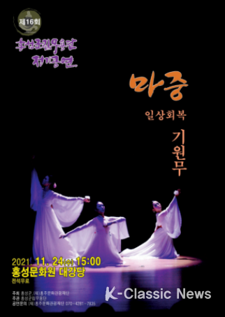 이어 홍성군립무용단의 제16회 정기공연 ‘마중,일상회복 기원무’가 11월 24일 오후 3시 홍성문화원 대공연장에서 펼쳐진다.