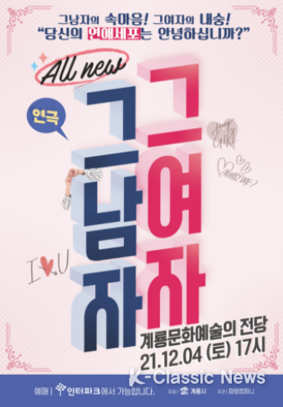 K-Classic News 조연정 기자 | 계룡시는 오는 12월 4일 저녁 5시 계룡문화예술의전당 대공연장에서 연극 ‘그 남자 그 여자’를 공연한다고 밝혔다.