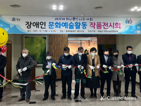 K-Classic News 조연정 기자 | 하동군지역사회보장협의체는 지난 7·8일 문화예술회관 1층 전시실에서 ‘세상에 하나뿐인 나의 아트!’라는 주제로 장애인 작품전시회를 성황리에 개최했다고 8일 밝혔다.