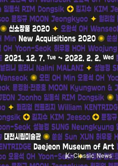 K-Classic News 조연정 기자 | 대전시립미술관은 연말연시를 예술과 함께 맞이할 수 있도록 12월 7일부터 2022년 2월 20일까지‘대전시립미술관 신소장품 2020-2021’전시회를 을 개최한다고 밝혔다.