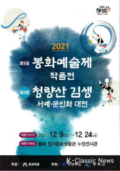 K-Classic News 조연정 기자 | 봉화군과 한국예총봉화지회는 지역주민과 방문객들에게 다양한 볼거리를 제공하고자 ‘청량산 김생 서예·문인화 대전 및 봉화예술제 작품전’을 오는 24일까지 봉화정자문화생활관 누정전시관 1층에서 진행한다.