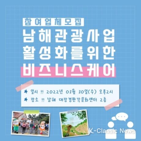 한편, 비즈니스 케어 행사 당일 1부에서는 남해관광문화재단과 한국스마트관광협회 간 업무협약식이 진행될 예정이다.