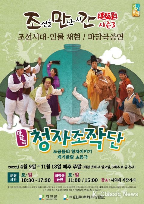 K-Classic News 최성수 기자 | 강진군 사의재 저잣거리에서 강진의 역사와 인물, 문화를 바탕으로 재현하는 문화관광 콘텐츠 조선을 만난 시간(이하 조만간) 프로젝트가 오는 16일부터 11월 13일까지 정식 공연을 시작한다.