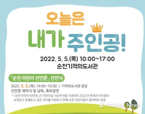 K-Classic News 정명선 기자 | 순천기적의도서관은 2022년 어린이날 100주년의 해를 맞이하여 어린이의 권리 보호와 지위 향상을 위한 다채로운 이벤트와 체험행사를 운영한다.