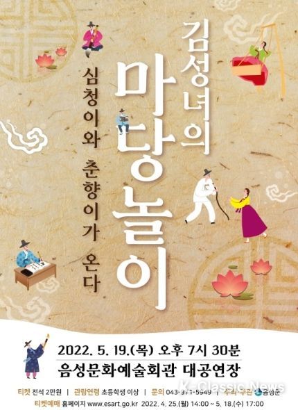 K-Classic News 최태문 기자 | 김성녀의 마당놀이 '심청이와 춘향이가 온다'가 오는 5월 19일(목) 오후 7시 30분 충북 음성군 음성문화예술회관 대공연장에 펼친다.