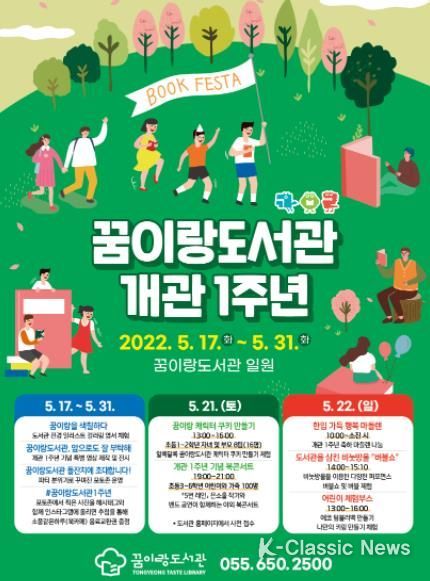 K-Classic News 정명선 기자 | 통영시 꿈이랑도서관은 개관 1주년을 맞아 시민들과 함께 축하하기 위해 다양한 독서문화행사를 운영한다.
