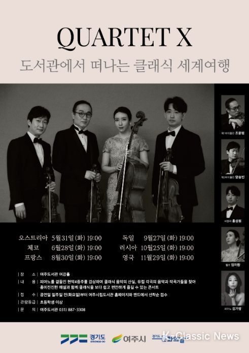 K-Classic News 최성수 기자 | 여주시 평생교육과 여주도서관은 경기도 문화의 날 문화예술지원 프로그램 공모사업에 3년 연속 선정되어 5월부터 오는 11월까지 매월 마지막 화요일 오후 7시에 클래식 음악회 '도서관에서 떠나는 클래식 세계여행'을 개최한다.