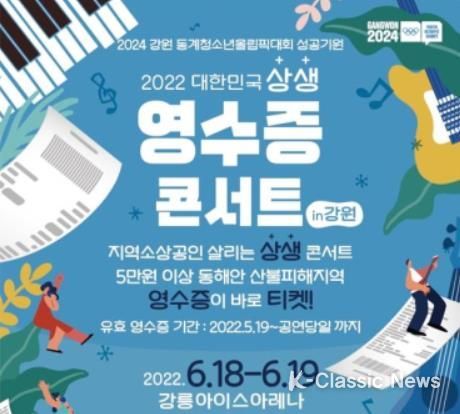 K-Classic News 정명선 기자 | 강원도(공동주최 강릉시/후원 호반그룹, 대중소기업농어업협력재단)는 6.18.~6.19. 2일 동안 강릉올림픽파크아이스아레나에서 2024 강원 동계청소년올림픽대회 성공기원'강원도 상생 영수증 콘서트'를 개최한다.