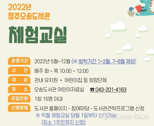 K-Classic News 정명선 기자 | 청주오송도서관이 코로나19 거리두기 해제에 따라 지역 내 어린이집·유치원 대상으로 진행하는 도서관 체험교실을 재개해 운영한다.