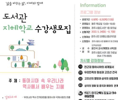 수강인원은 20명이며 다음 7일까지 경주시립도서관 홈페이지에서 선착순 접수한다.