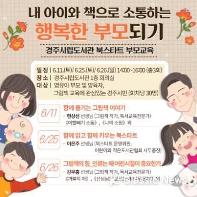 K-Classic News 정명선 기자 | 경주시립도서관은 다음달 11일·25일·26일 3회에 걸쳐 ‘내 아이와 책으로 소통하는 행복한 부모 되기’라는 주제로 북스타트 부모교육 특강을 진행한다.