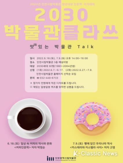 K-Classic News 정명선 기자 | 인천광역시는 시립박물관에서 MZ세대들을 대상으로 인문학 아카데미 '2030 박물관클라쓰'를 개설한다고 밝혔다.