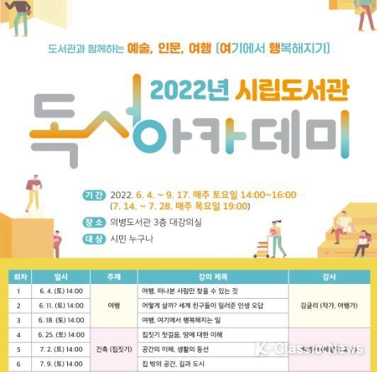 K-Classic News 정명선 기자 | 제천시립도서관은 문화체육관광부가 주최하고 한국출판문화산업진흥원이 주관하는 ‘2022년 독서아카데미’사업 수행기관으로 선정, 6월부터 강좌를 운영한다.