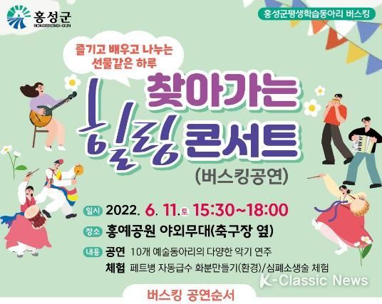 K-Classic News 정명선 기자 | 오는 11일 홍예공원 야외무대에서 홍성군 평생학습동아리연합회의 '찾아가는 힐링콘서트' 버스킹 공연이 개최된다.