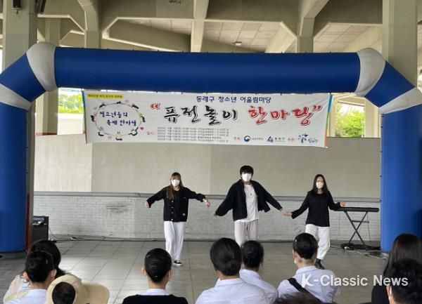 K-Classic News 정명선 기자 | 부산 동래구는 지난 4일 청소년폭력예방재단 부산지부와 함께 사직실내체육관 1-2문 앞 광장 앞에서 2022년 1차 동래구 청소년 어울림마당을 열었다.