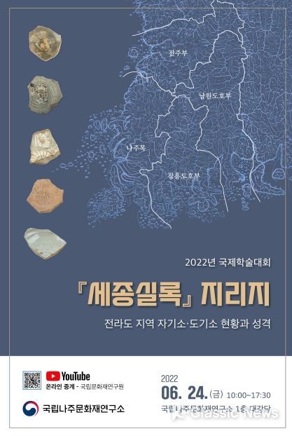 K-Classic News 최성수 기자 | 문화재청 국립문화재연구원 국립나주문화재연구소은 오는 24일 오전 10시 국립나주문화재연구소 대강당에서 "세종실록 지리지 내 전라도 지역 자기소․도기소 현황과 성격"을 주제로 국제학술대회를 개최한다.