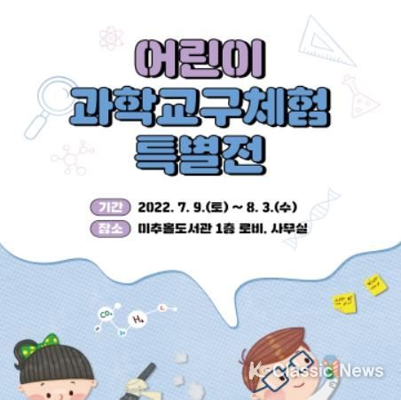 K-Classic News 정명선 기자 | 인천광역시는 오는 7월 9일부터 8월 3일까지 미추홀도서관 1층에서 '어린이 과학교구체험 특별전'을 개최한다고 밝혔다.