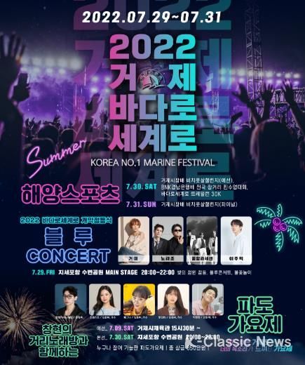 K-Classic News 정명선 기자 | 거제시는 경남 대표 여름 축제인 '2022 거제 바다로 세계로'를 7월 29일부터 7월 31일 까지 지세포항 수변공원 및 구조라 해수욕장 등에서 3일간 개최한다고 밝혔다.