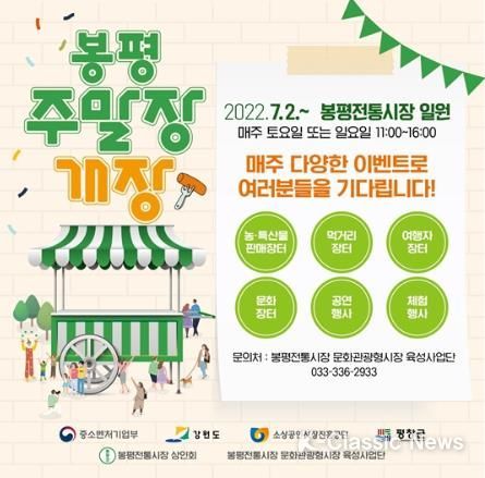 봉평주말장은 플리마켓 형태로 문화장터, 먹거리장터, 농산물판매장터를 운영하고, 8월부터는 여행관련 중고물품을 사고팔 수 있는 여행자 나눔장터도 열릴 예정이다.