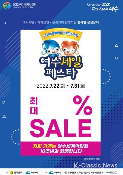 K-Classic News 정명선 기자 | 여수세계박람회 10주년을 맞아 7월 22일부터 31일까지 여수시 주요 상가에서 ‘여수세일페스타’가 열린다.
