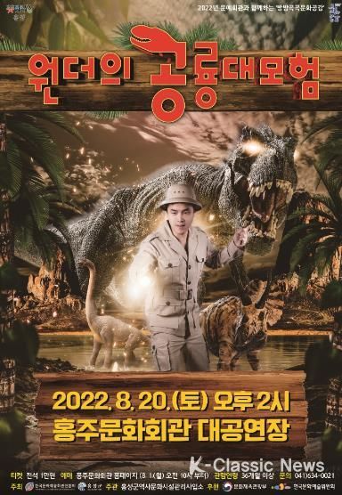 K-Classic News 정명선 기자 | 홍성군 홍주문화회관은 여름방학을 맞아 온 가족이 함께 즐길 수 있는 뮤지컬 “원더의 공룡대모험”을 오는 8월 20일 오후 2시에 개최한다.