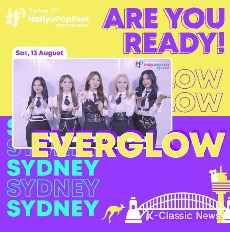 에버글로우는 오는 13일 호주 시드니 쿠도스 뱅크 아레나(Qudos Bank Arena)에서 열리는 'Hallyu Pop Fest Sydney 2022 (한류 팝 페스트 시드니 2022)' 무대에 올라 공연을 펼친다.