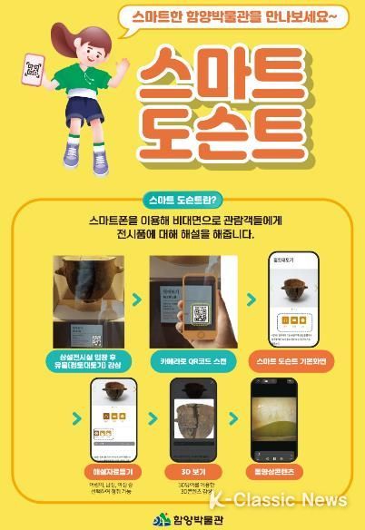 K-Classic News 정명선 기자 | 함양박물관이 ‘스마트 함양박물관 구축 사업’을 완료하고 8월 13일부터 스마트 도슨트, 스탬프 랠리, 온라인전시관 서비스를 개시한다.