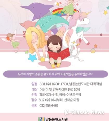 K-Classic News 정명선 기자 | 인천시 남동구 남동논현도서관은 문화가 있는 날 행사 ‘책 읽어주는 마술사, 마술책방’을 오는 31일 오후 4시에 운영한다고 17일 밝혔다.