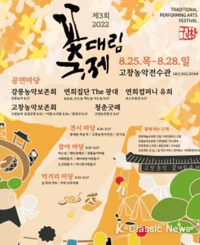 K-Classic News 정명선 기자 | (사)고창농악보존회(회장 구재연)가 주최하고 전라북도와 고창군이 후원하는 ‘제 3회 꽃대림 축제’가 다가오는 오는 25일부터 28일까지 3박4일 간 진행된다.