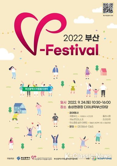 K-Classic News 박미영 기자 | 부산시와 부산광역시자원봉사센터는 9월 24일 10시 30분부터 송상현광장 다이내믹부산마당에서 ‘2022 부산 V-Festival’을 개최한다고 밝혔다.