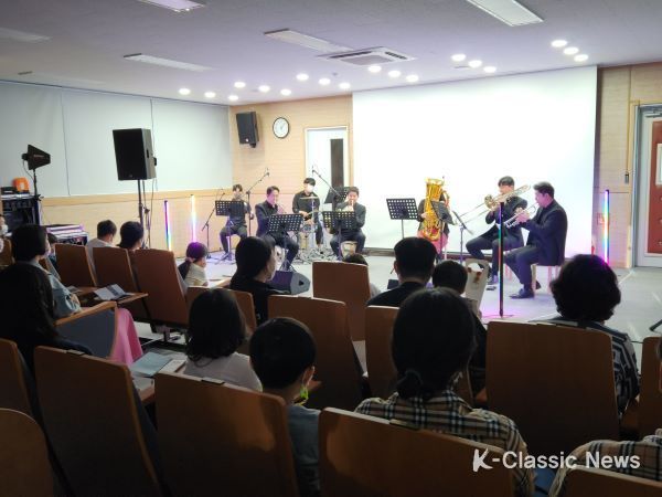 K-Classic News 강희현 기자 | 완주군 콩쥐팥쥐도서관에 대한민국 대표 금관 앙상블인 코리안아츠 브라스가 찾아왔다.