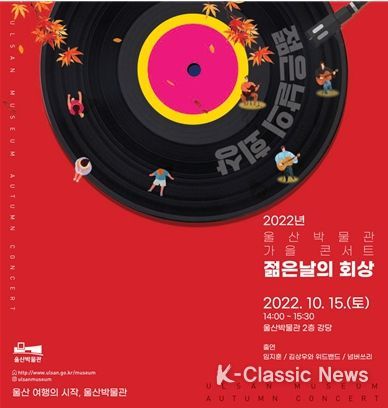 K-Classic News 박미영 기자 | 울산박물관(관장 신형석)은 2022년 문화의 날을 맞아 10월 15일 오후 2시 박물관 2층 강당에서 가을콘서트 ‘젊은날의 회상’을 개최한다고 밝혔다.
