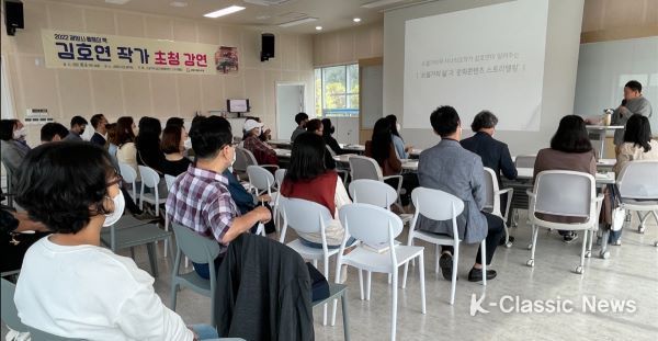 K-Classic News 강희현 기자 | 광양시립도서관이 지난 6일 금호도서관에서 ‘2022 올해의 책’ '불편한 편의점'의 저자 김호연 작가를 초청해 ‘소설가의 삶과 문화콘텐츠 스토리텔링 그리고 '불편한 편의점' 집필기’라는 주제로 강연을 열었다.
