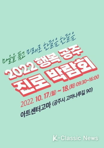 K-Classic News 강희현 기자 | 공주시는 학생 스스로 꿈을 찾을 수 있는 진로탐색 기회를 제공하기 위한 ‘2022 행복공주 진로체험박람회’를 오는 17일부터 18일까지 아트센터 고마에서 개최한다고 밝혔다.
